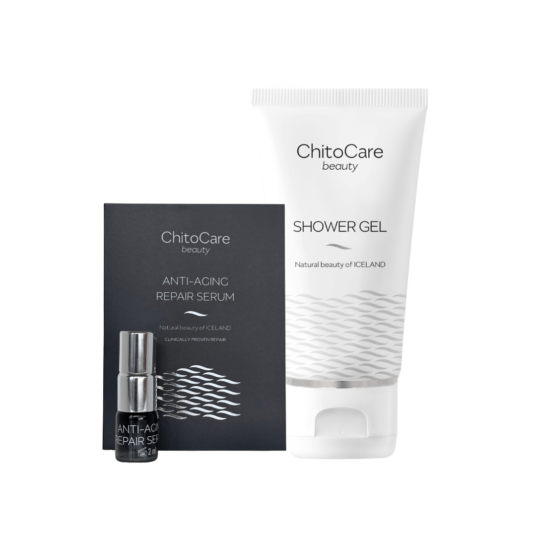 Ef þú kaupir tvær eða fleiri vörur frá ChitoCare þá fylgir með Shower Gel 50ml, Anti Age Repair Serum 2ml og svört snyrtibudda.