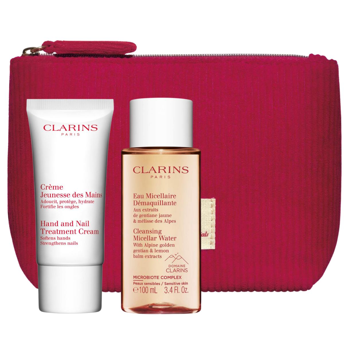 Ef þú kaupir vörur frá Clarins yfir 12.900kr þá fylgir með Cleansing Micellar Water 100ml, Hand and Nail Cream 30ml og rauð snyrtibudda.