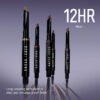 Penninn er skáskorinn svo auðvelt er að herma eftir hárum eða fylla inn í augabrúnirnar. Á hinum endanum er greiða.