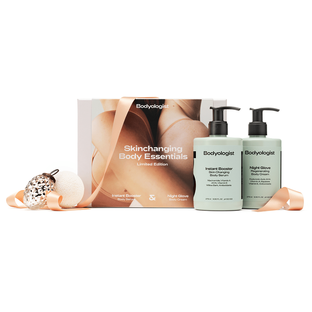 Skinchanging Body Essentials gjafasettið inniheldur tvær mest seldu vörurnar frá Bodyologist sem koma jafnvægi á starfsemi húðarinnar og bæta áferð og ásýnd hennar.