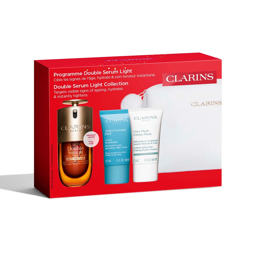 Gjafasettið inniheldur Double Serum Light 30ml, Hydra-Essentiel Day Cream 15ml og Cryo-Flash Cream-Mask 15ml.