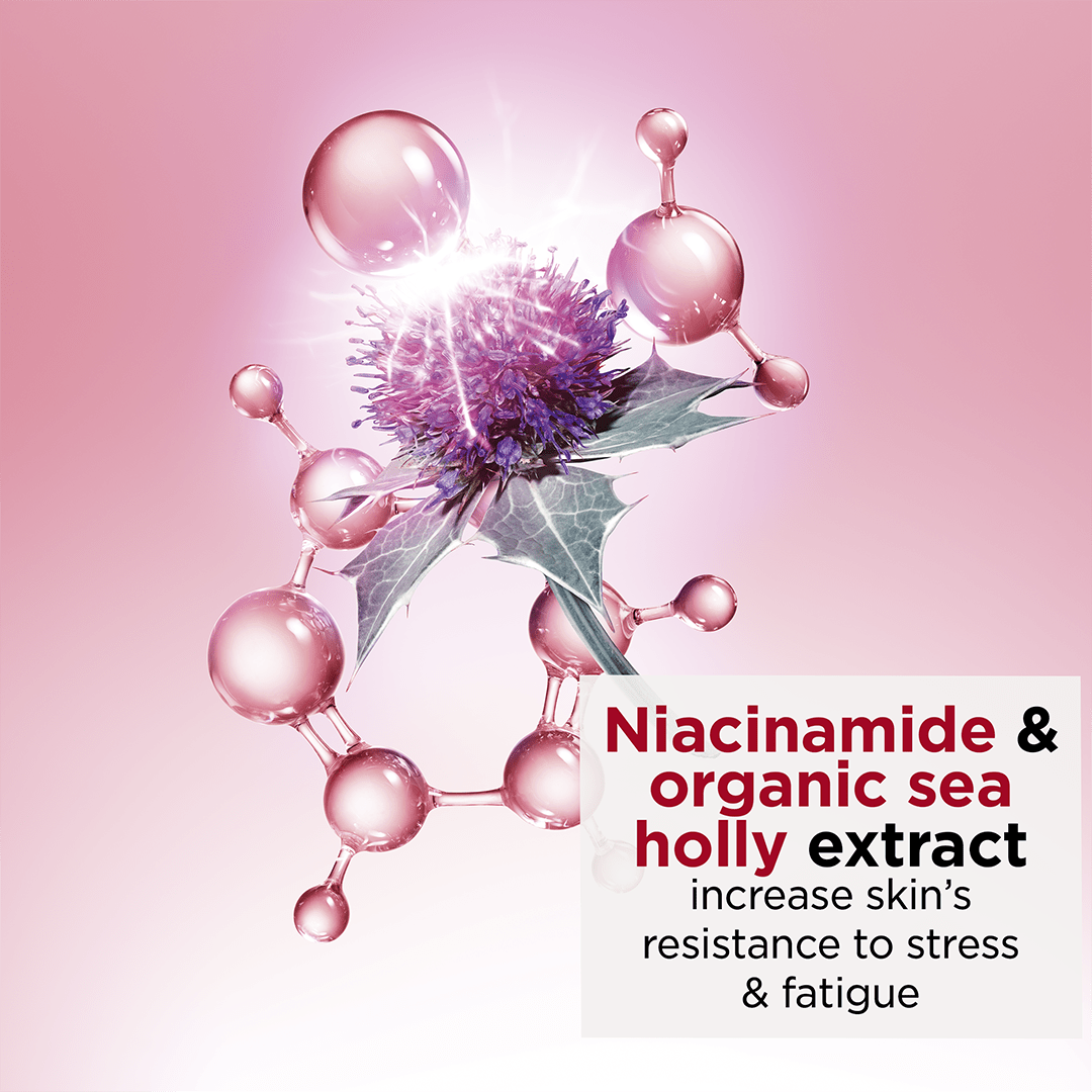 Skin Charger Complex: Níasínamíð og marþyrnir mynda öflugt dúó sem hjálpar til við að draga úr fyrstu sýnilegu öldrunarmerkjunum. Hindrunarvirkni húðarinnar styrkist, ljómi hennar endurvakinn og æskan varðveitt. Öflugt tetrapeptíð hjálpar húðinni að endurnýja sig yfir nótt. Kakósmjör stuðlar að þægindum fyrir húðina.