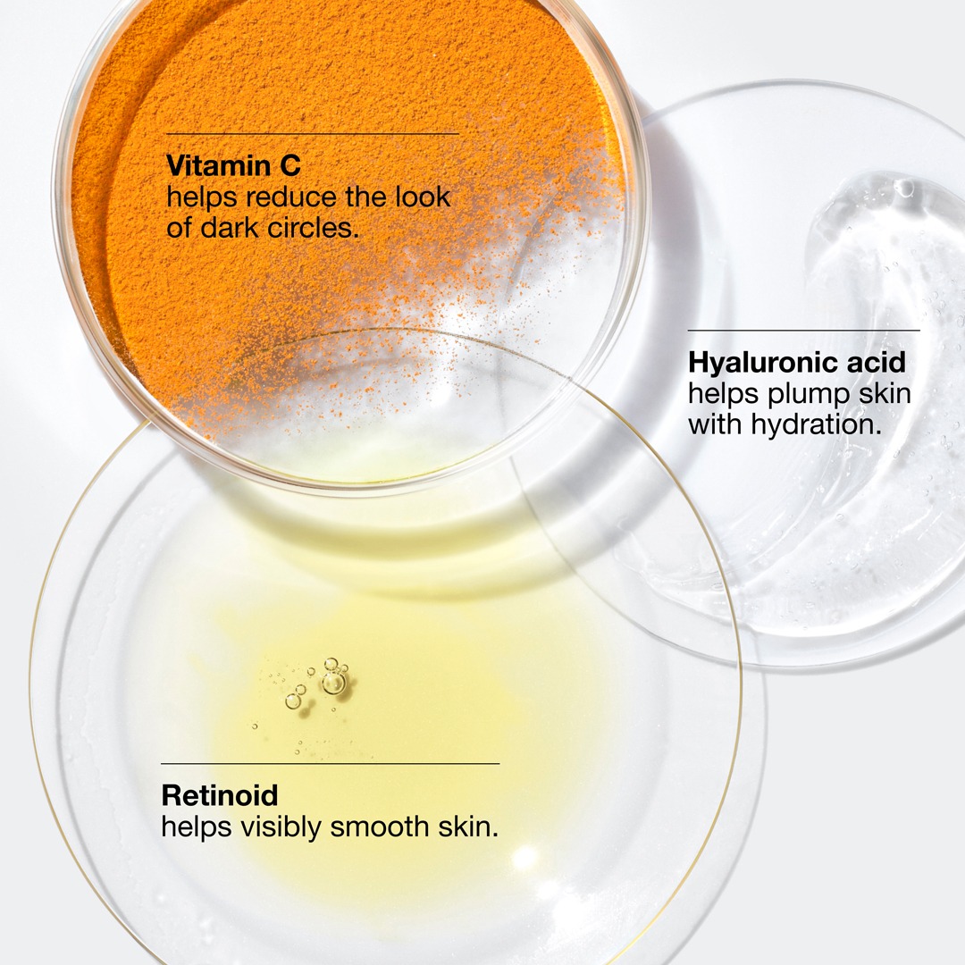 - Retinoid: Hjálpar til við að flýta fyrir náttúrulegri frumuendurnýjun húðarinnar fyrir sýnilega sléttara augnsvæði.