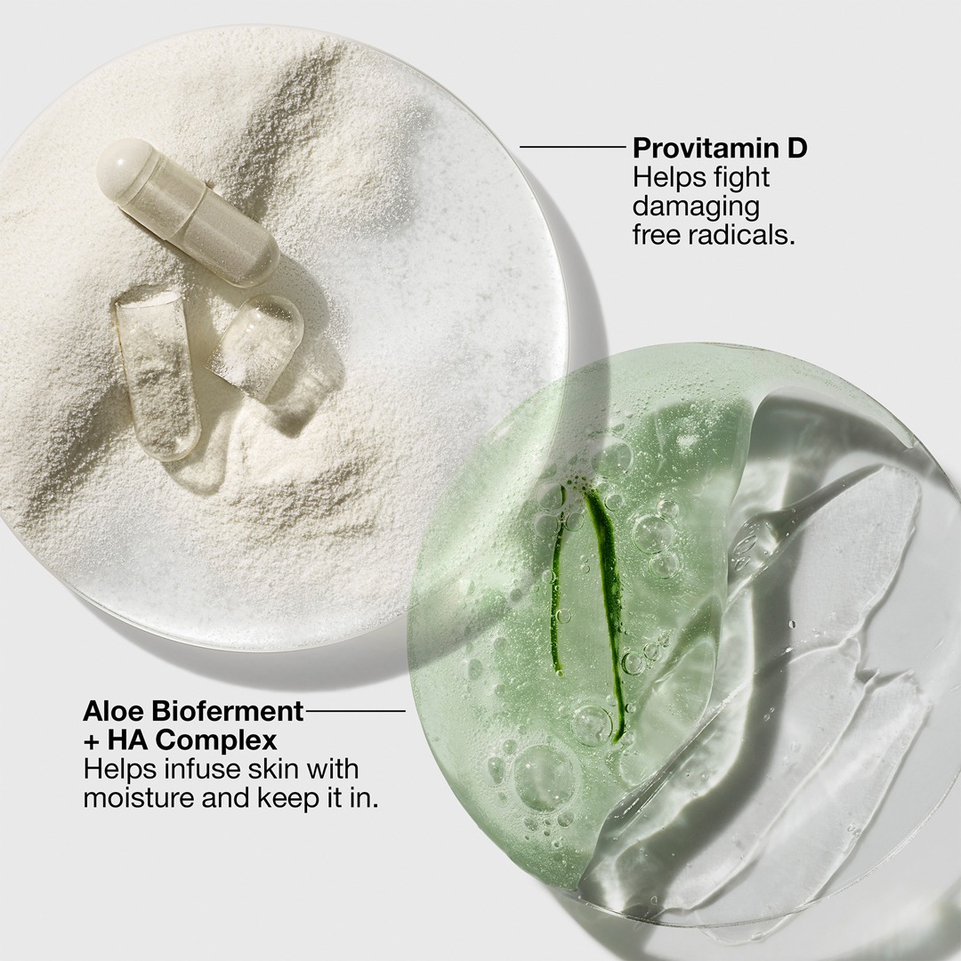 Aloe Bioferment + HA Complex sameinar tvö rakagefandi innihaldsefni í eitt til að hjálpa til við að laða að raka og halda honum.