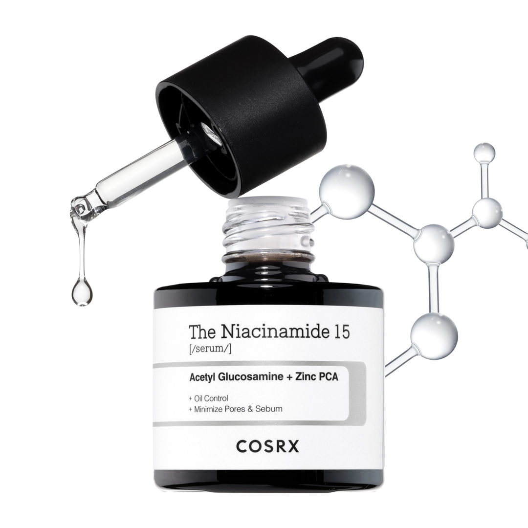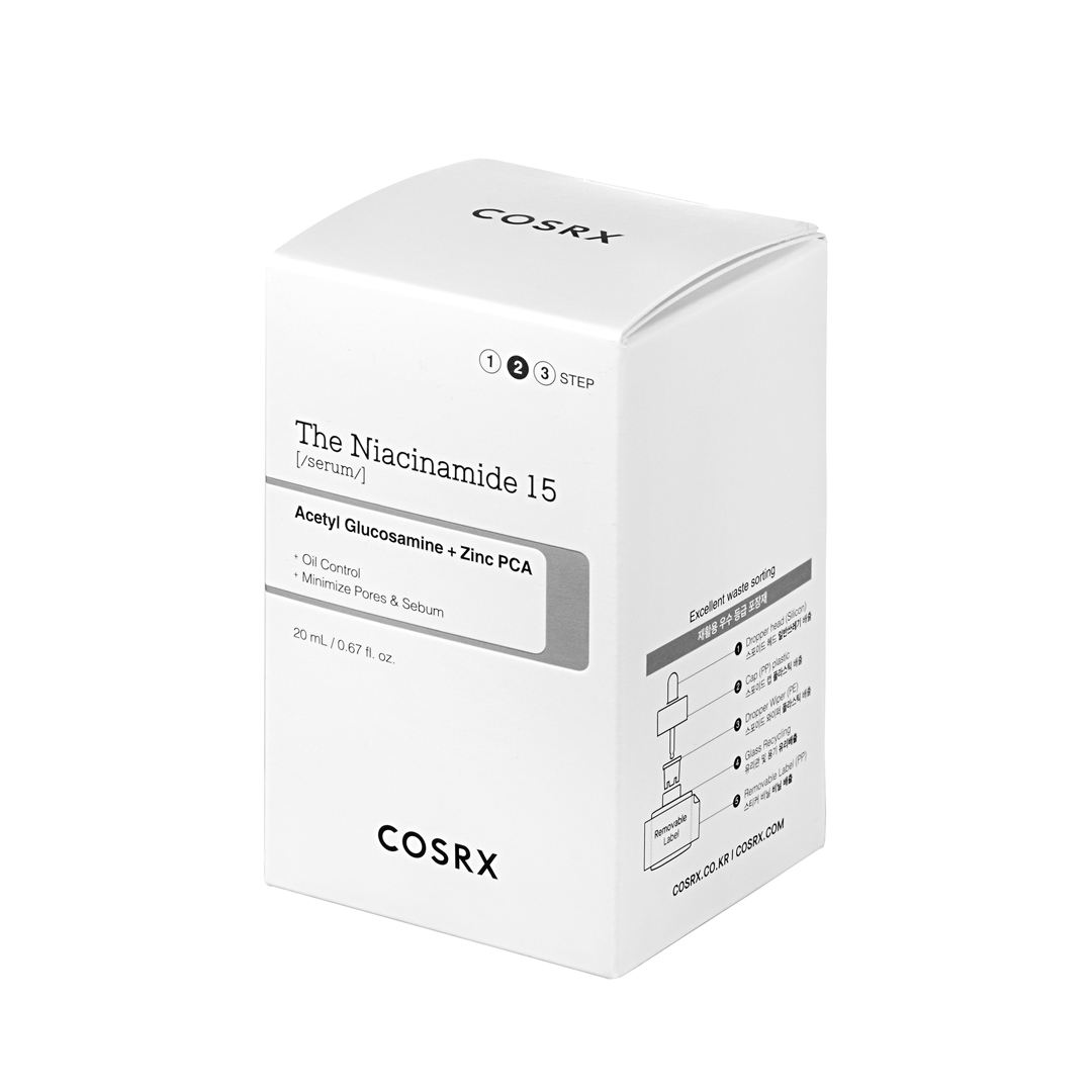 Niacinamide 15% er virkt serum sem vinnur á umfram olíu myndun, ójöfnum húðlit, skort á ljóma og grófri áferð húðar. Formúlan er blönduð saman við asetýlglúkósamín og sink PCA og vinnur vel á alhliða unglingabólum.