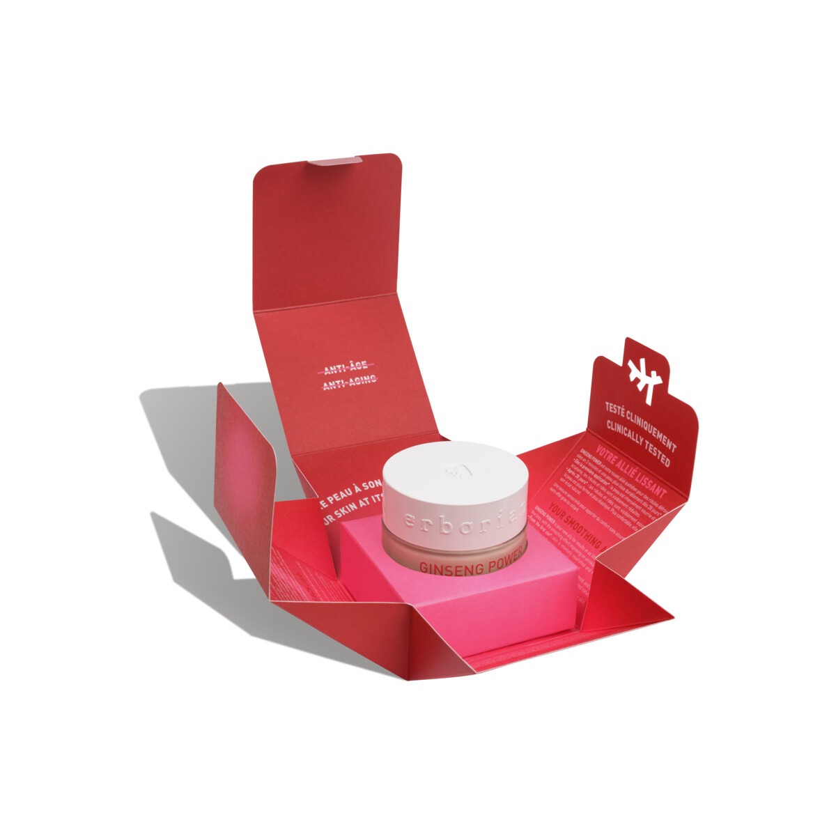 Ginseng Power andlitskrem er stútfullt af hvítu Ginsengi sem er öflugu suður-kóreskt virkt efni sem er jafn áhrifaríkt og retínól. Þetta silkimjúka krem mýkir húðina, dregur úr fínum línum á aðeins 3 mínútum og vinnur á hrukkum á aðeins 28 dögum. Dag eftir dag verður húðin mýkri, stinnari og teygjanlegri.