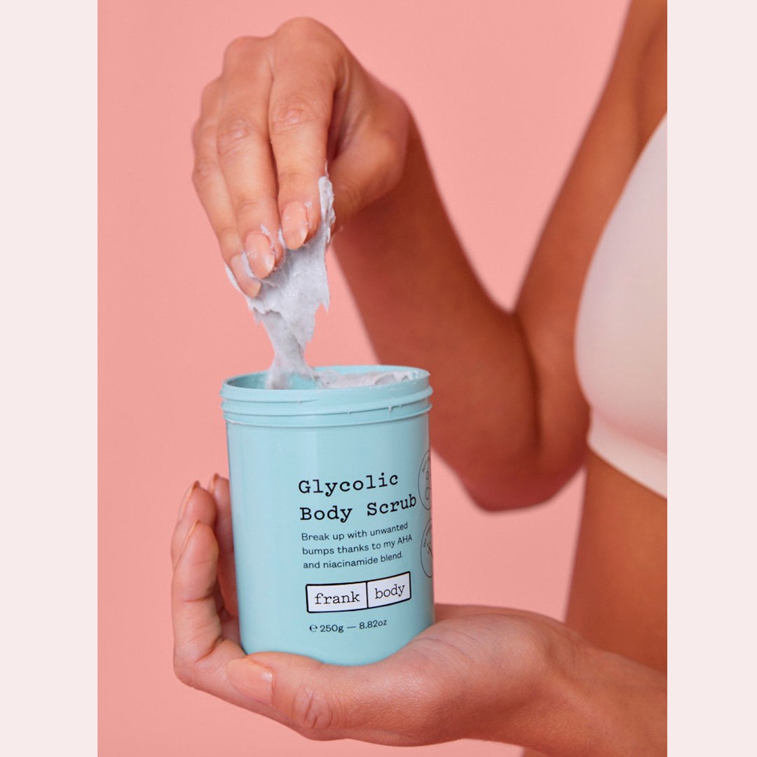 Líkamsskrúbbur sem inniheldur Glýkólsýru sem vinnur einstaklega vel á útbrotum og keratosis pilaris. Skrúbburinn er einstaklega auðveldur í notkun og skilur húðina eftir mýkri, sléttari og hreinni. Formúlan inniheldur virkar AHA sýrur sem hreinsa og slétta húðina hraðar, vinna á útbrotum/bólum og koma í veg fyrir að þær komi aftur. Skrúbburinn inniheldur einnig Witch Hazel sem róar húðina og dregur úr roða, Niacinamide sem kemur jafnvægi á húðina og Eucalyptus sem gefur ferskan ilm.