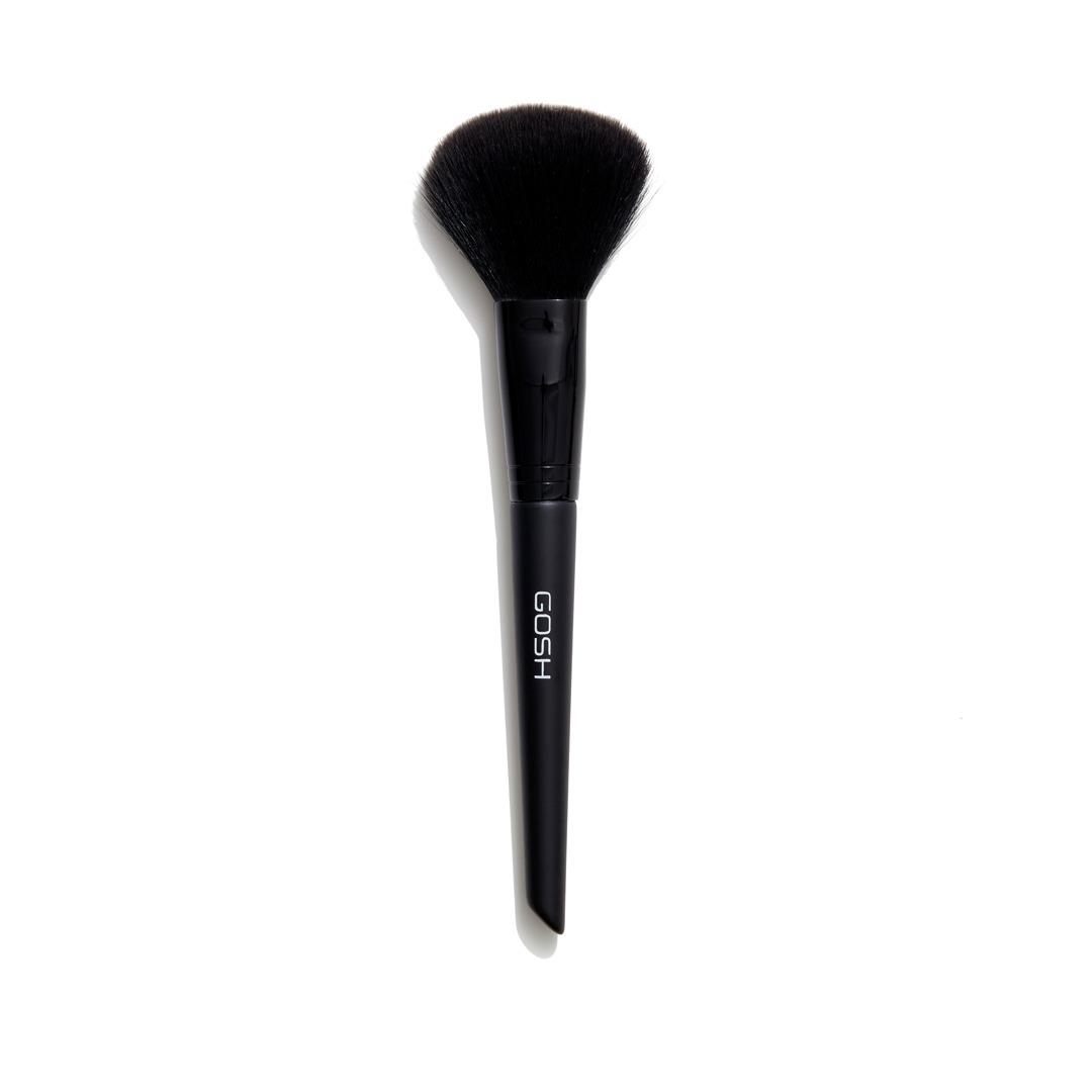Mjúkur púðurbursti með gervihárum sem hentar til að bera púður og sólarpúður á andlitið.