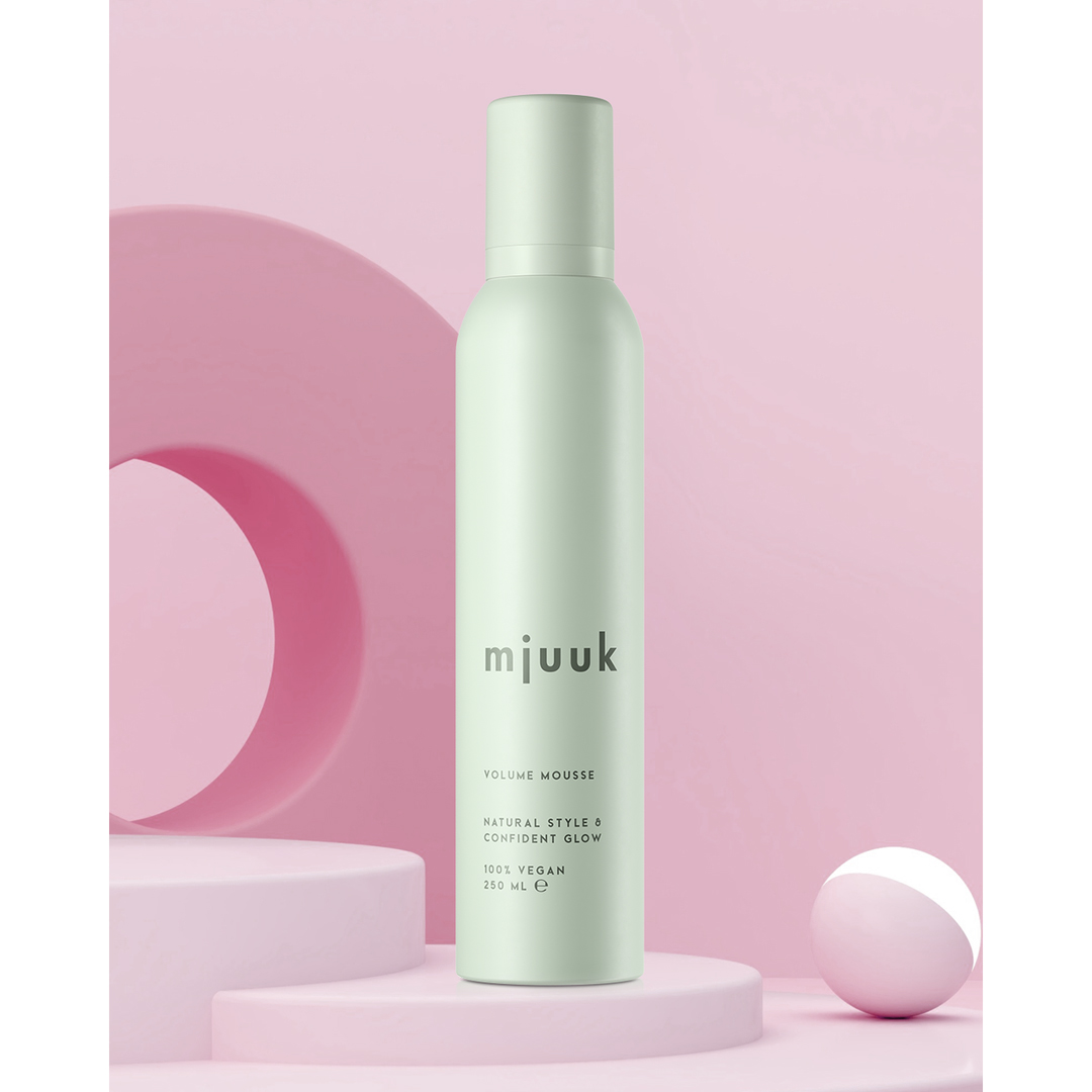 MJUUK VOLUME MOUSSE gefur hárinu fyllingu og meðfærileika án þess að það verði þungt. Hárið verður teygjanlegt og líflegt frá rót til enda. Inniheldur hitavörn.