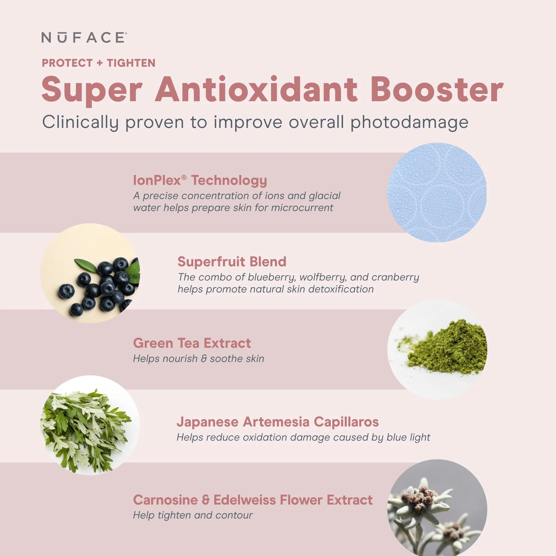 NuFACE Protect+Tighten Super Antioxidant Booster Serum virkar vel til að auka árangur örstraumsins eða einn og sér.