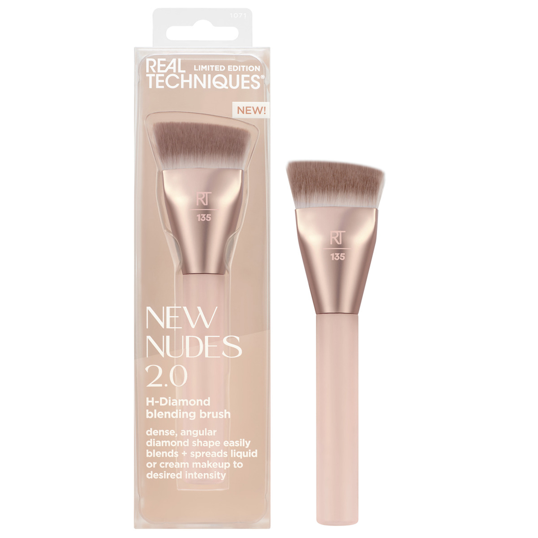 Real Techniques New Nudes 2.0 H-Diamond Blending Brush er með þéttum, skáhallandi burstahaus með demantslögun sem auðvelt er að bera á og blanda farða. Burstinn hjálpar þér að blanda og dreifa fljótandi og kremkenndum farða að þeirri þekju sem þú vilt. Hægt er að nota burstann fyrir farða, kinnalit eða contour, sem gerir hann að fjölhæfum förðunarbursta fyrir andlitið.
